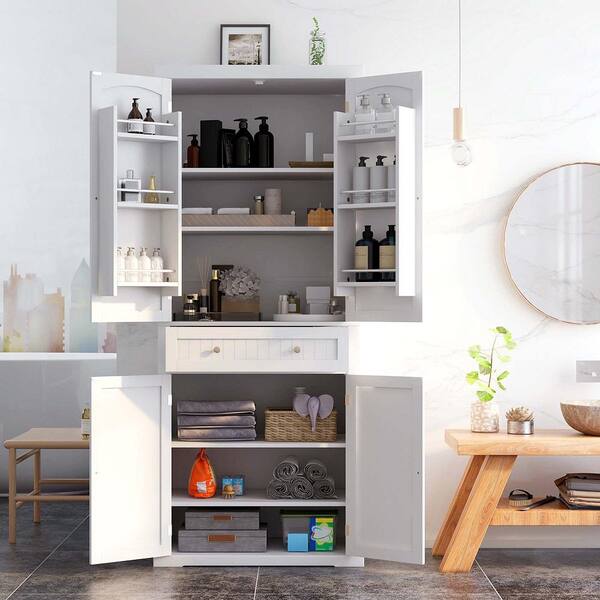 White 72 in. H Storage Cabinet with Adjustable Shelves Freestanding Kitchen Pantry Cabinet