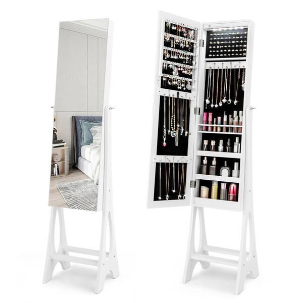 White LED Jewelry Cabinet Armoire with Bevel Edge Mirror Organizer Mirrored Standing
