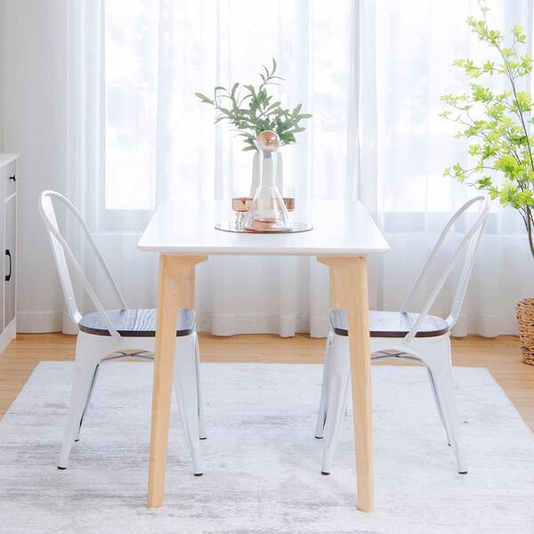 White Tolix Style Metal Dining Chair Wood Seat Stackable Bistro Cafe (Set of 4)