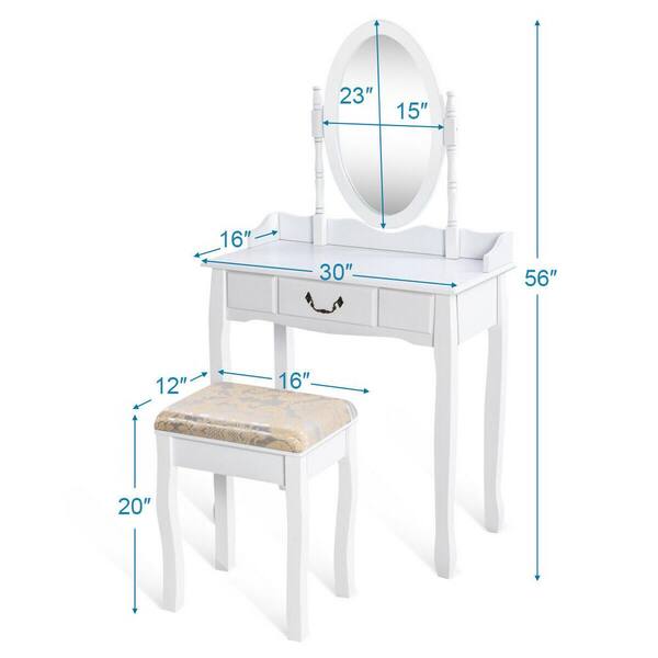 White Vanity Table Jewelry Makeup Desk Bench Dresser with Cushioned Stool Drawer