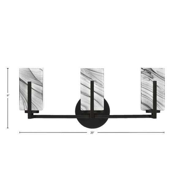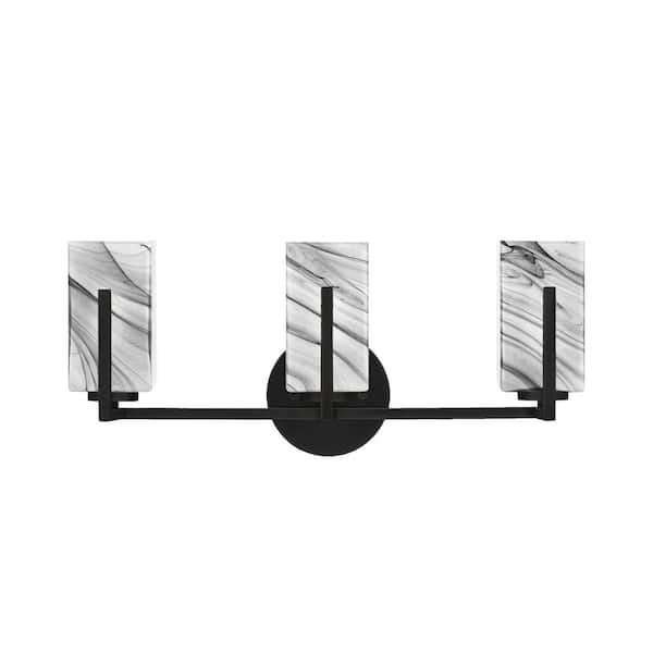 Cottonwood 20.75 in. 3-Light Vanity Light Matte Black with 3.5 in. Square Onyx Swirl Glass Shades, No Bulbs Included
