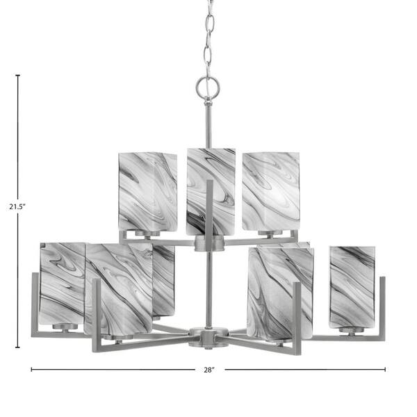 Cottonwood 28 in. 9 Light Graphite Chandelier with 3.5 in. Square Onyx Glass Shade, No Bulbs Included
