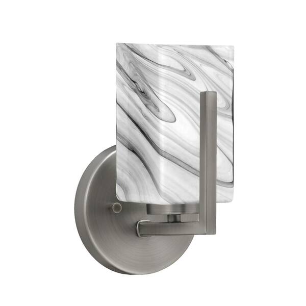 Cottonwood 3.5 in. 1 Light Graphite Sconce with 3.5 in. Square Onyx Swirl Glass Shade, No Bulb Included