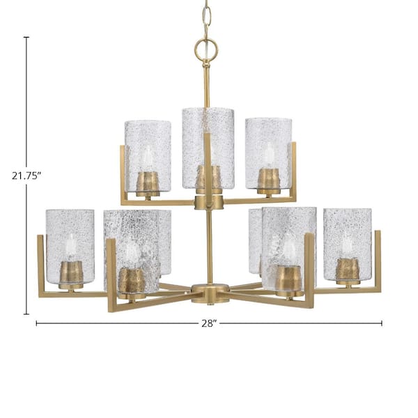Cottonwood 9-Light New Age Brass Chandelier, Round Chandelier with 4 in. Smoke Bubble Glass Shades, No bulbs included