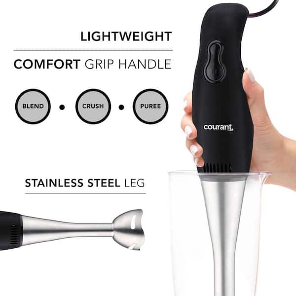 2-Speed Black Immersion Blender Stainless Steel Leg Hand Mixer