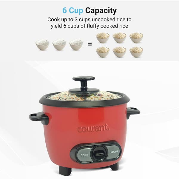 6-Cup (Cooked) Rice Cooker, Removable Non-Stick Bowl, One Touch Rice Cooker, Red