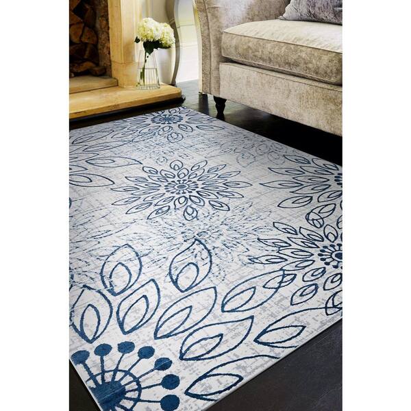 Calinda Summer Bliss Steel Blue-Ivory 8 ft. x 11 ft. Area Rug