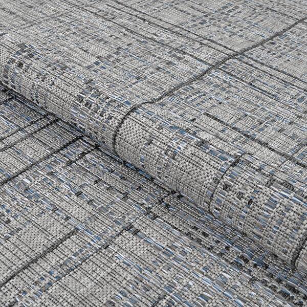 Charm Grasscloth Grey-Denim Blue 8 ft. x 11 ft. Indoor/Outdoor Area Rug