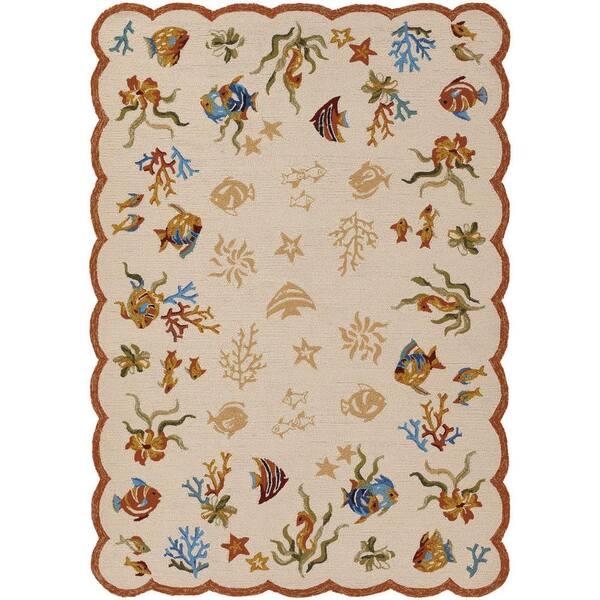 Outdoor Escape Coral Dive Sand 8 ft. x 11 ft. Indoor/Outdoor Area Rug