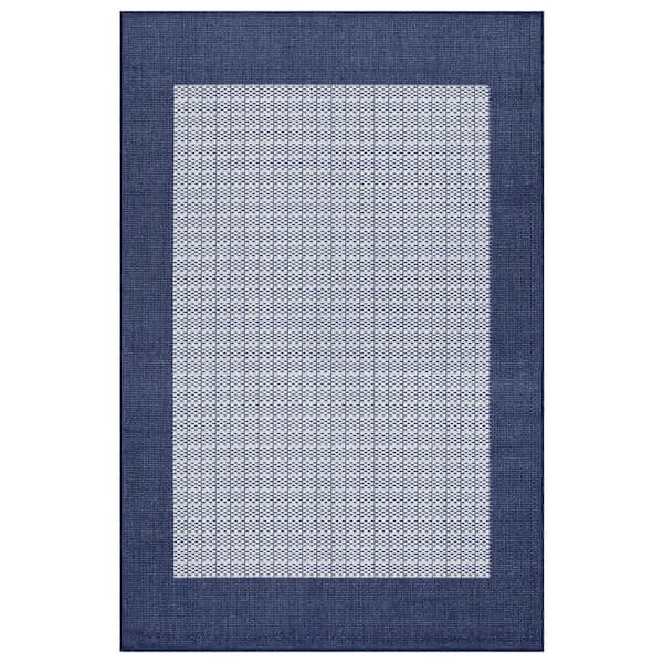 Recife Checkered Field Ivory-Indigo 9 ft. x 13 ft. Indoor/Outdoor Area Rug
