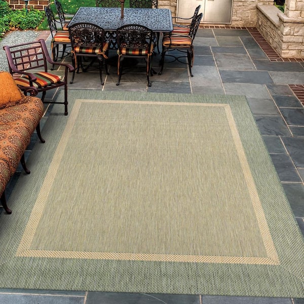 Recife Stria Texture Natural-Green 2 ft. x 8 ft. Indoor/Outdoor Runner Rug
