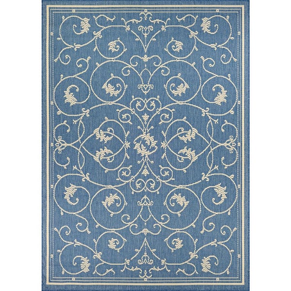 Recife Veranda Ivory-Blue 5 ft. x 8 ft. Flatwoven Floral Rectangle Indoor/Outdoor Area Rug