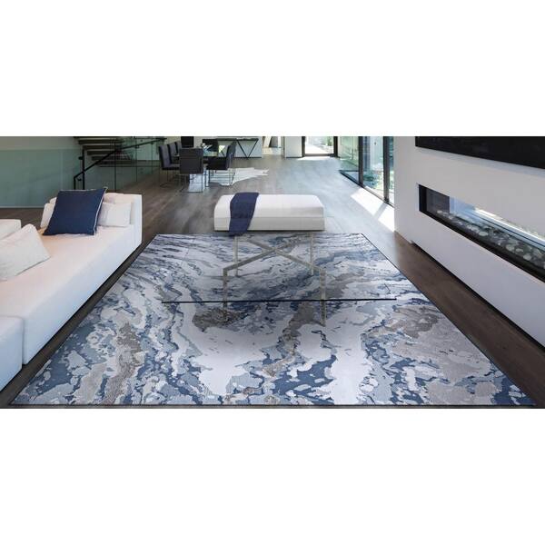 Serenity Abstract Marble Grey-Opal 2 ft. x 8 ft. Runner Rug