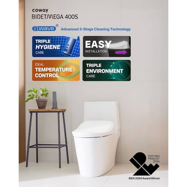Bidetmega 400S Electric Instant Heating Bidet Seat for Elongated Toilets in White