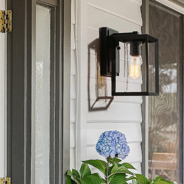 Craftsman Rectangle Porch Outdoor Wall Sconce 1-Light Black Industrial Patio Outdoor Wall Light with Seeded Glass Shade
