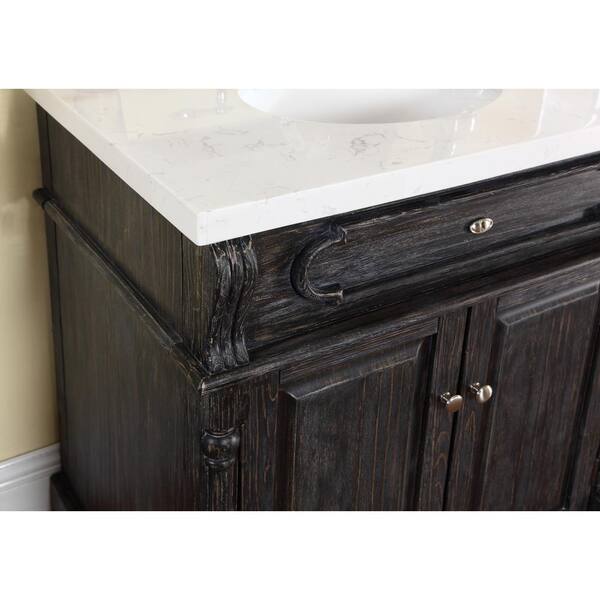 Baymore 30 in. W x 22 in. D Vanity in Distressed Charcoal with Marble Vanity Top in Gray and White with White Basin