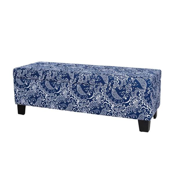 Berkley Blue and White Paisley Pattern Linen Rectangular Storage Bench