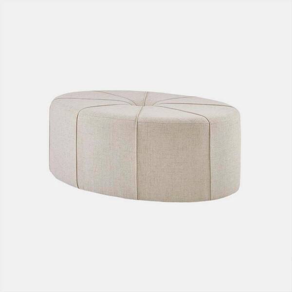 Cream Polyester Fabric Oval Large Cocktail Ottoman
