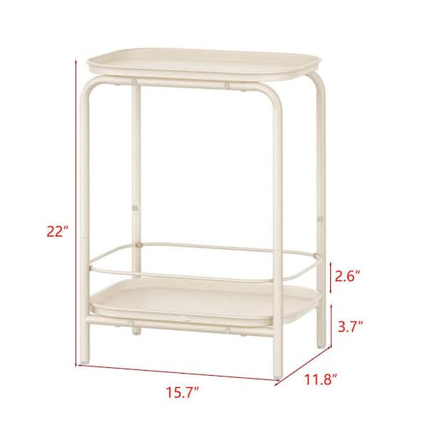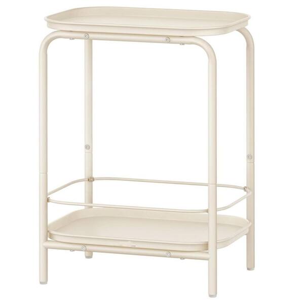 Cream White Rectangular Metal Outdoor Side Table
