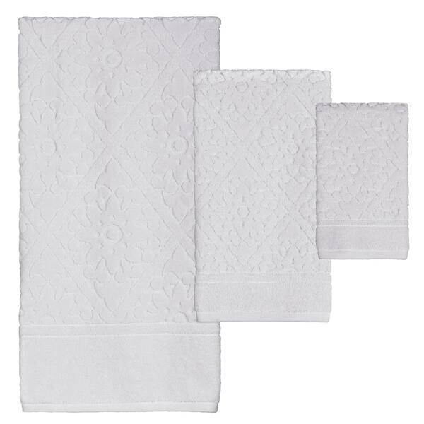 Belle 3-Piece White Geometric Bath Towel Set