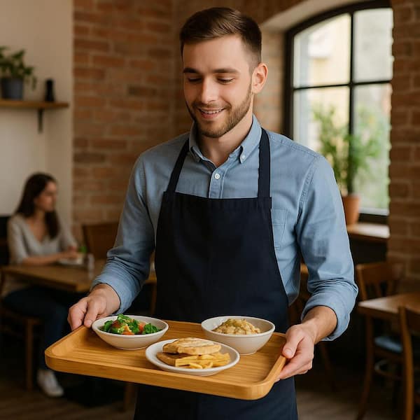 11 in. L x 14 in. W Natural Bamboo Rectangular Serving Tray Coffee Tea Platter Dessert Fruit Plate