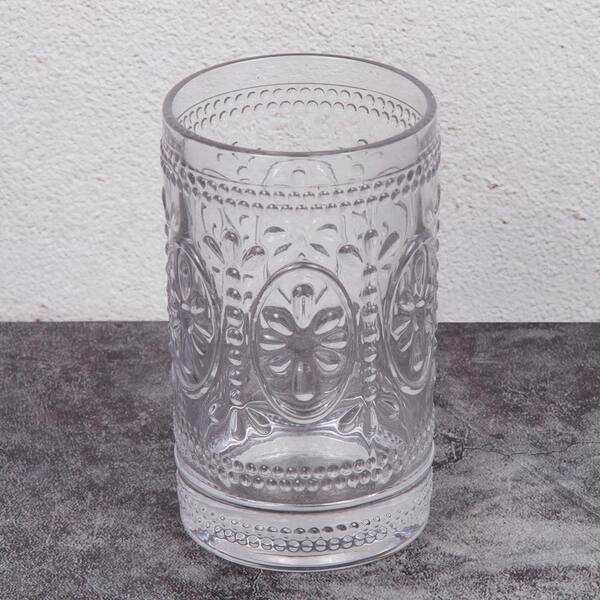 2-3/4 in. Dia x 4-5/8 in. H Floral Scroll Clear Glass Tumbler Toothbrush Holder