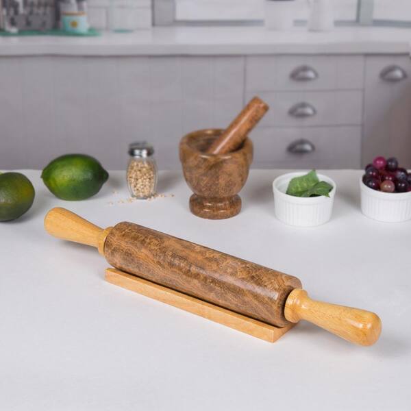 Deluxe 18 in. Mocha Marble Rolling Pin with Wood Handles and Cradle