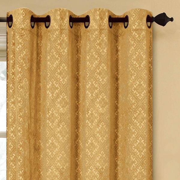 Semi-Opaque Matine Trellis Extra Wide Gold Embossed Velvet Grommet Curtain Panel - 54 in. W x 84 in. L