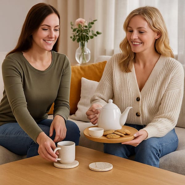 Natural Champagne Marble Set of 4-Pieces Round Coaster, 4 in. Dia. for Fine Dining Dinner Table Service