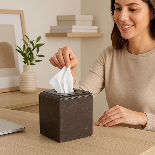 Natural Charcoal Marble Tissue Box Holder, Tissue Box Cube Cover for Bathroom Countertop Organize