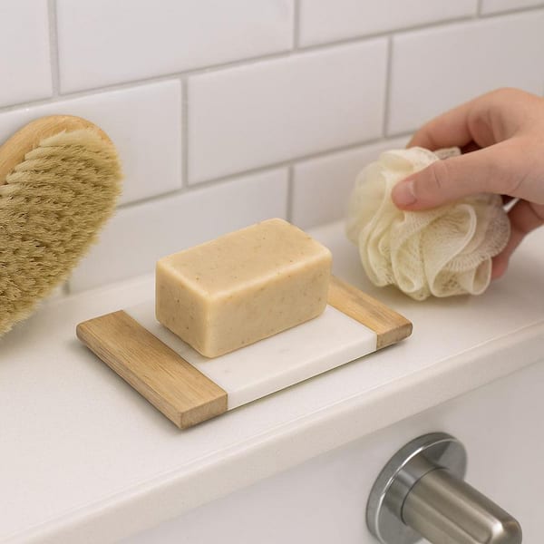 Taj Elite Natural Marble and Mango Wood Rectangular Soap Dish