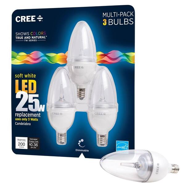 TW Series 25W Equivalent Soft White B13 Medium Candelabra Decorative Dimmable LED Light Bulb (3-Pack)