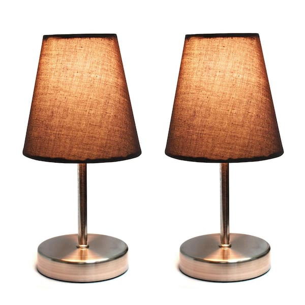 10.5 in. Iconic Duo Mini Sand Nickel Table Lamp 2-Pack Set, for End Tables, Nightstands, Offices, Brown Shades