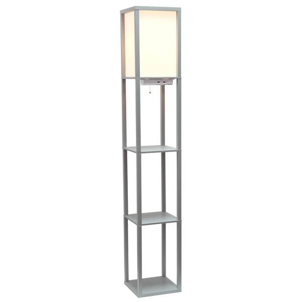 62.5 in. Gray Modern 3-Tier Column Floor Lamp with Charging Ports and Outlet for Living Room with LED Bulb Included
