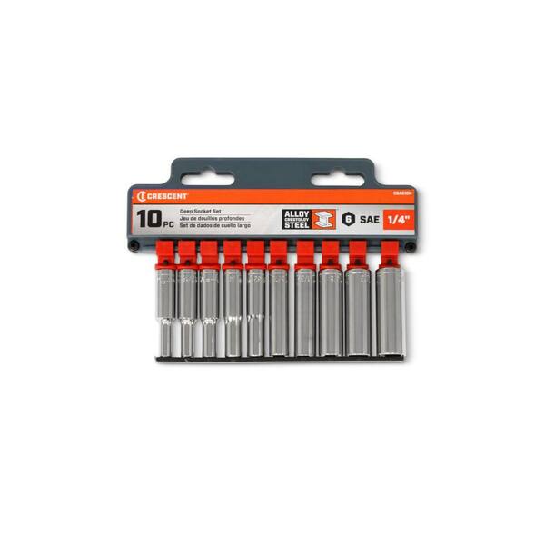 1/4 in. Drive SAE 6-Point Deep Socket Set with Socket Rail (10-Piece)