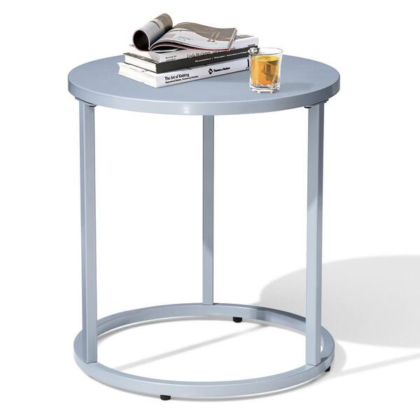 1-Piece 17.9 in. Round Metal Outdoor Patio Side Table in White