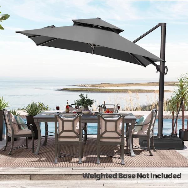 10 ft. Double Top Square Cantilever Patio Umbrella in Dark Gray
