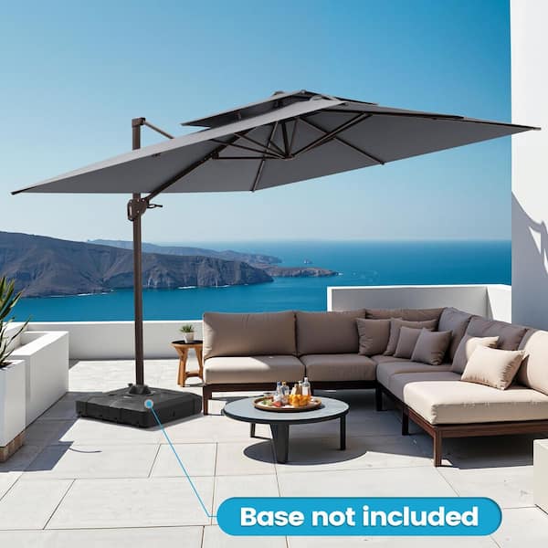 10 ft. Square Double-Top Polyester 360° Rotation Cantilever Tilt Patio Umbrella in Dark Gray