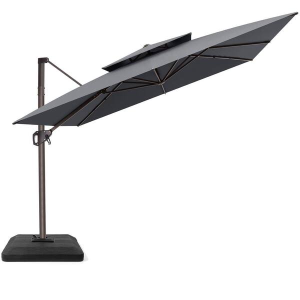 10 ft. Square Double-Top Polyester Cantilever Tilt Patio Umbrella in Dark Gray with 220 lbs. HDPE Base