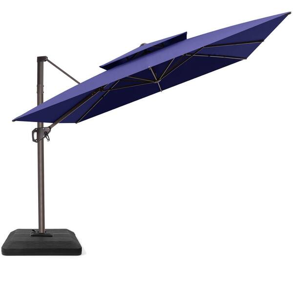 10 ft. Square Double-Top Polyester Cantilever Tilt Patio Umbrella in Navy with 220 lbs. HDPE Base