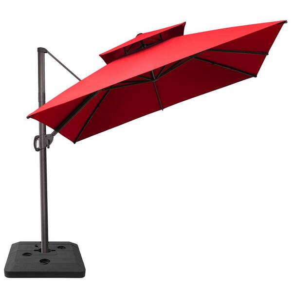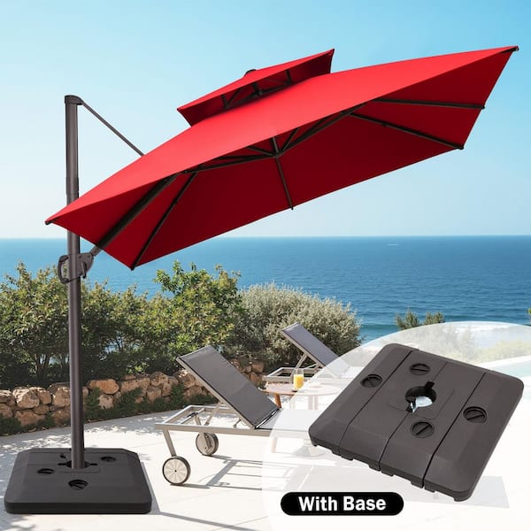 10 ft. x 10 ft. 360 ° Rotation Rectangular Cantilever Patio Umbrella in Red with 240 lbs. Base Stand