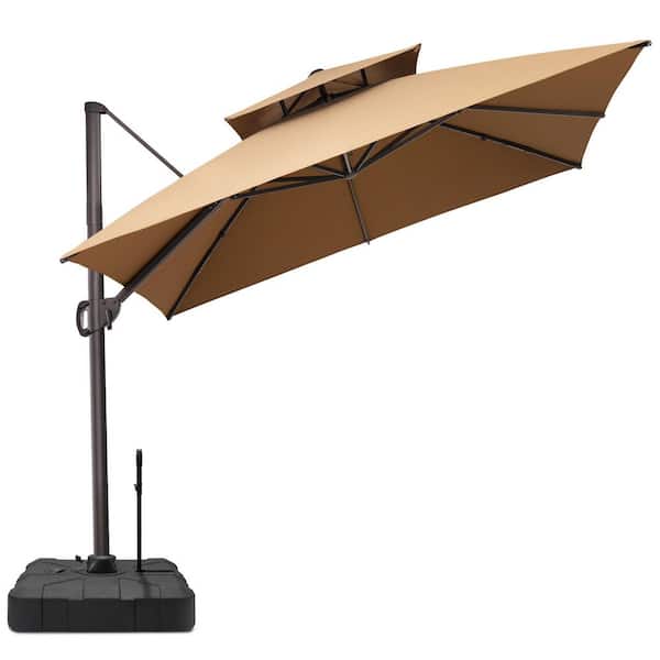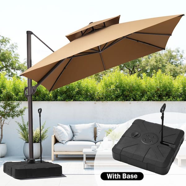 10 ft. x 10 ft. 360 ° Rotation Rectangular Cantilever Patio Umbrella in Tan with 300 lbs. Base Stand