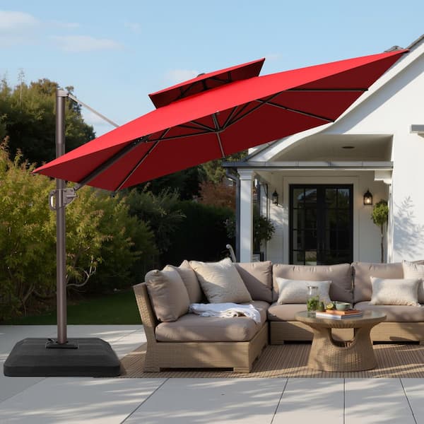 11.5 ft. x 9 ft. Double Top Cantilever Tilt Patio Umbrella in Red with 220 lbs. HDPE Base