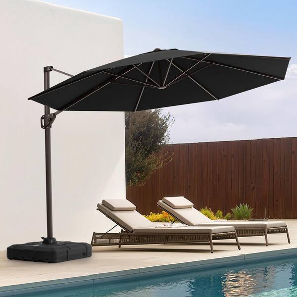 11 ft. Octagon Round 360° Rotation Cantilever Tilt Patio Umbrella in Black