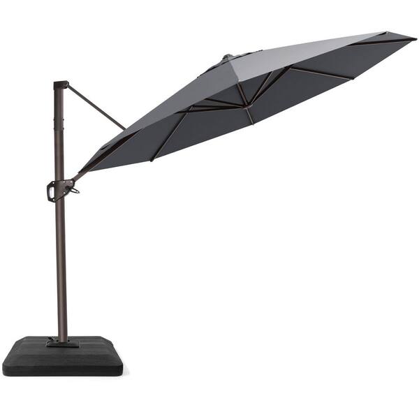 11 ft. Octagon Round 360° Rotation Cantilever Tilt Patio Umbrella in Dark Gray with 220 lbs. HDPE Base