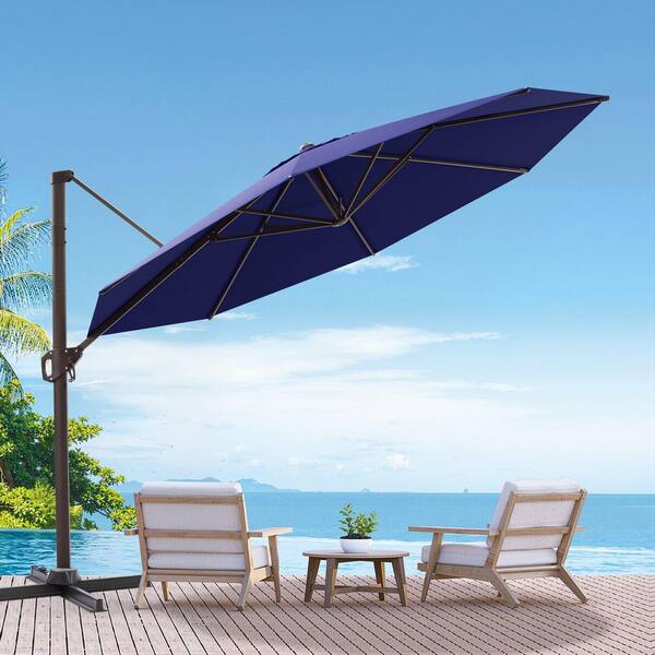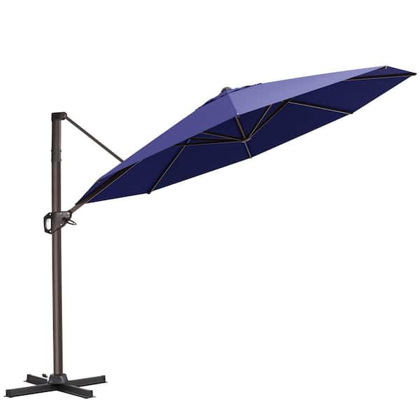 11 ft. Octagon Round 360° Rotation Cantilever Tilt Patio Umbrella in Navy