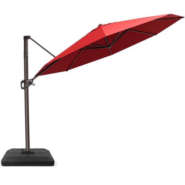 11 ft. Octagon Round 360° Rotation Cantilever Tilt Patio Umbrella in Red with 220 lbs. HDPE Base