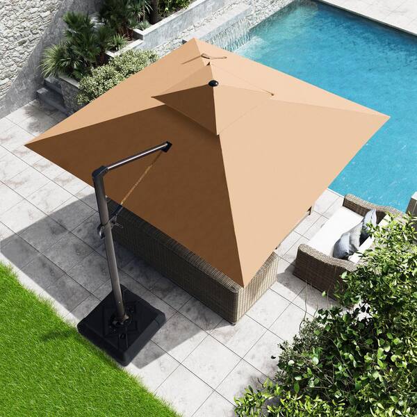 11 ft. Outdoor Double Top Square Cantilever Patio Umbrella in Tan