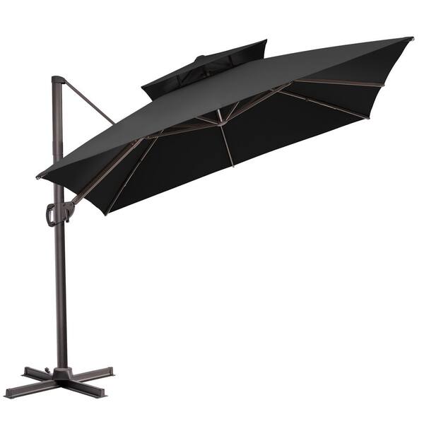 11 ft. x 11 ft. Double Top Aluminum Cantilever Tilt Patio Umbrella in Black