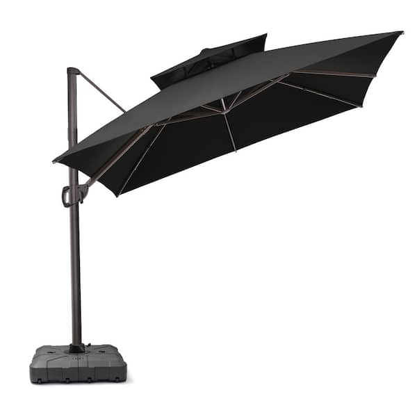 11 ft. x 11 ft. Double Top Cantilever Tilt Patio Umbrella in Black with 260 lbs. Base Stand